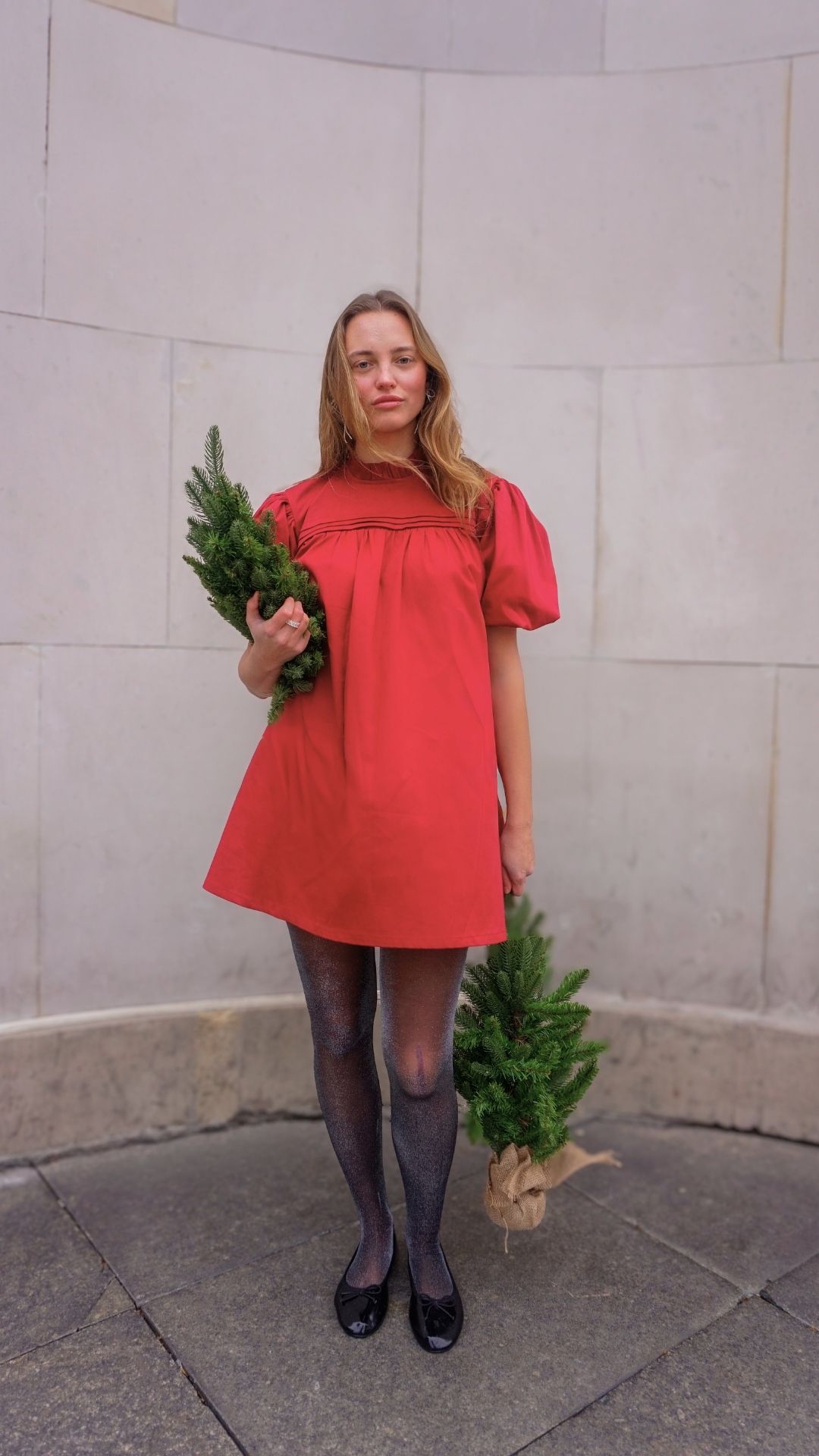GIGI is our most festive, most romantic dress of the season. Crafted in Poland from high-quality cotton & viscose blend, it features a slightly A-line silhouette, statement puff sleeves and delicate gathers under the yoke that create beautiful movement. It’s the perfect December dress — for Christmas dinners, cosy evenings out, or winter celebrations. Style it with ballet flats, boots or sparkly tights — GIGI makes every outfit feel magical.