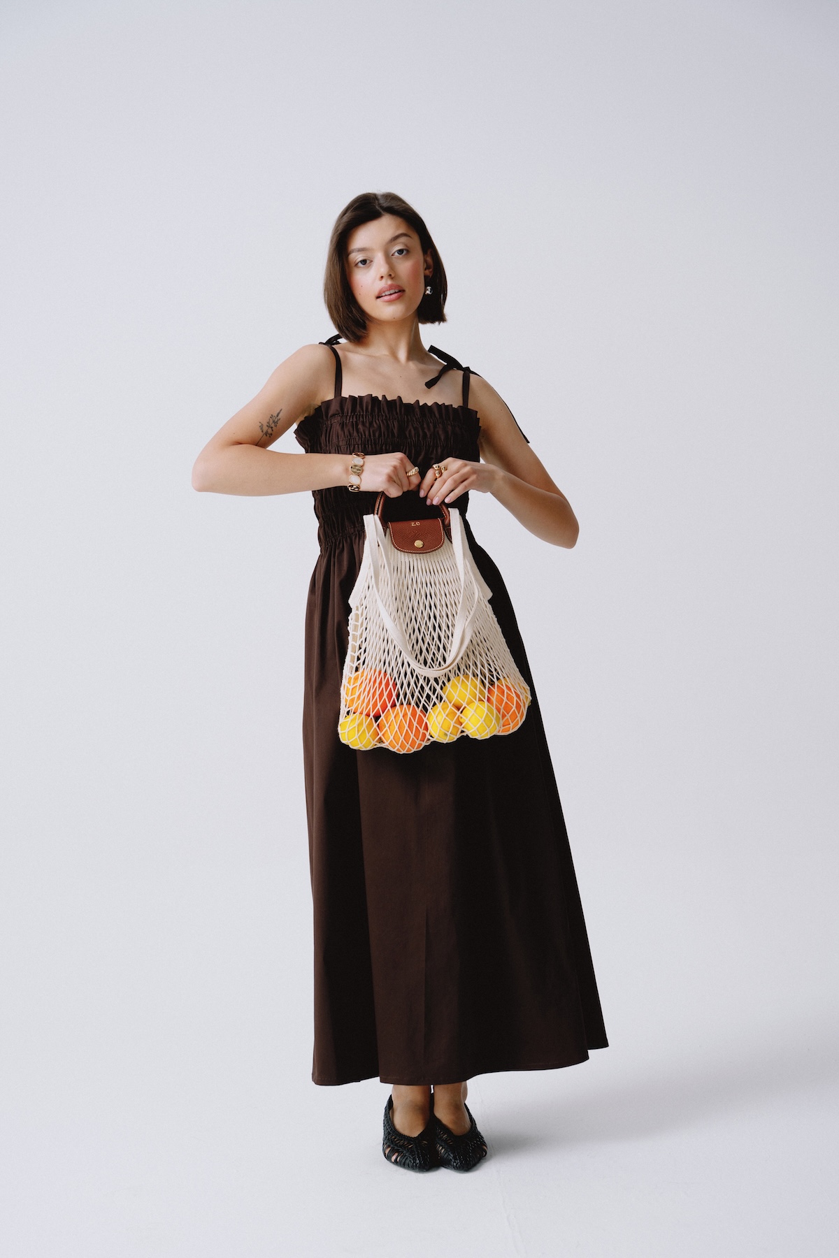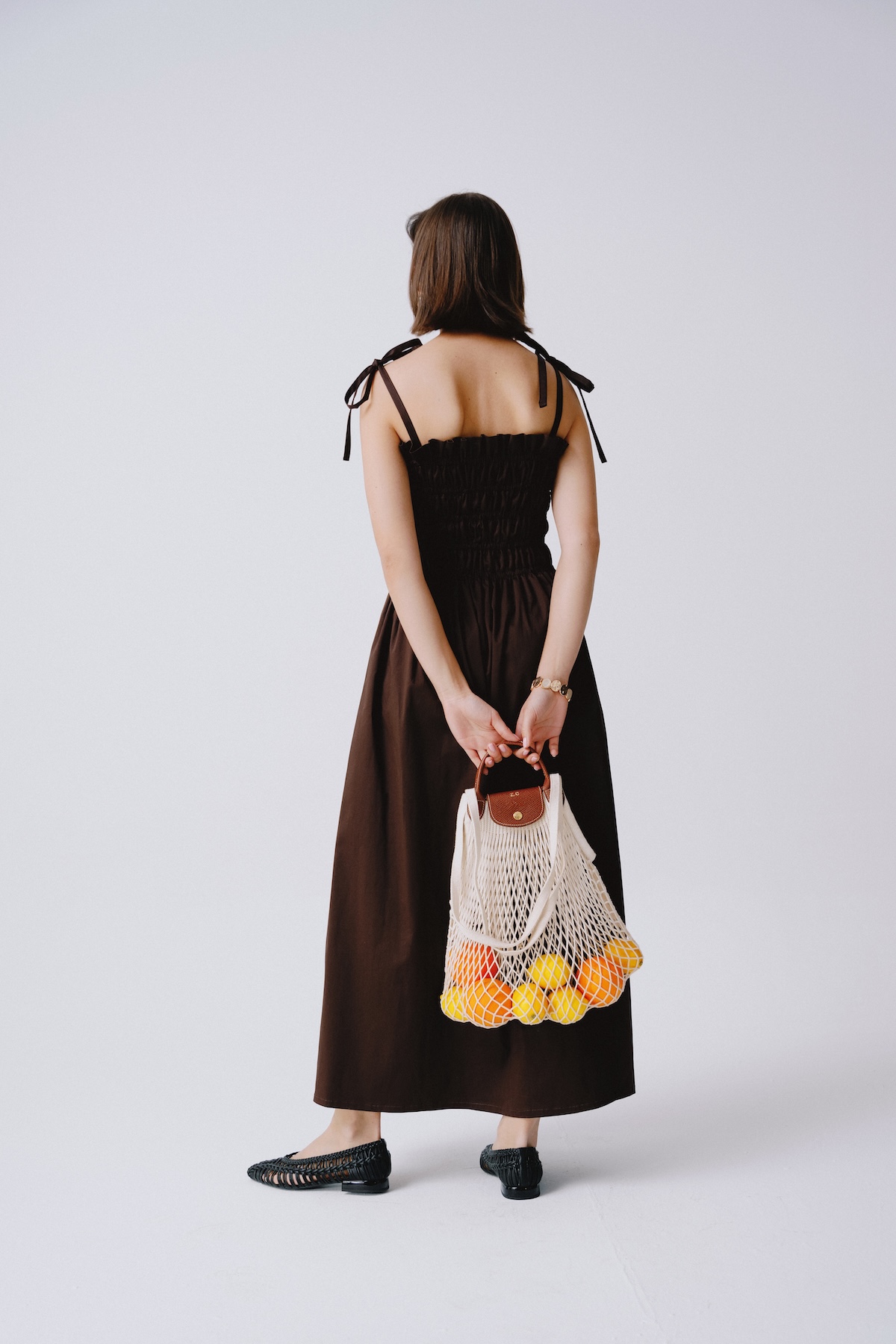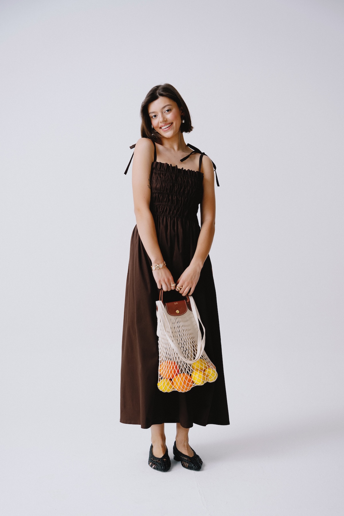 Brown strappy summer dress. Effortlessly feminine and light as summer air. The Matilde dress in a chocolate brown color is made for strolls, café mornings, and golden hour moments. With delicate ruching and straps, it flatters the silhouette while offering maximum comfort. An essential for your summer wardrobe.
