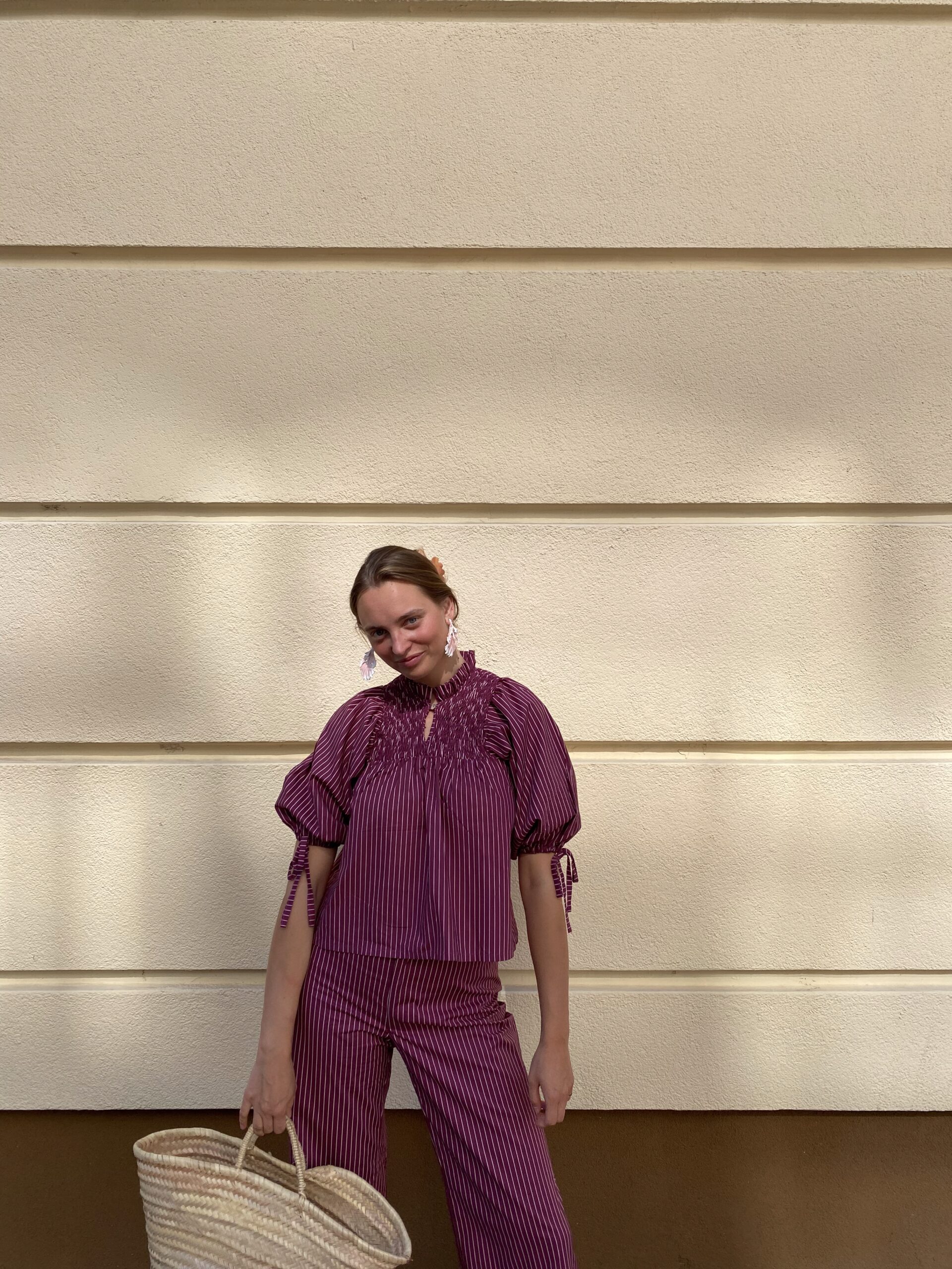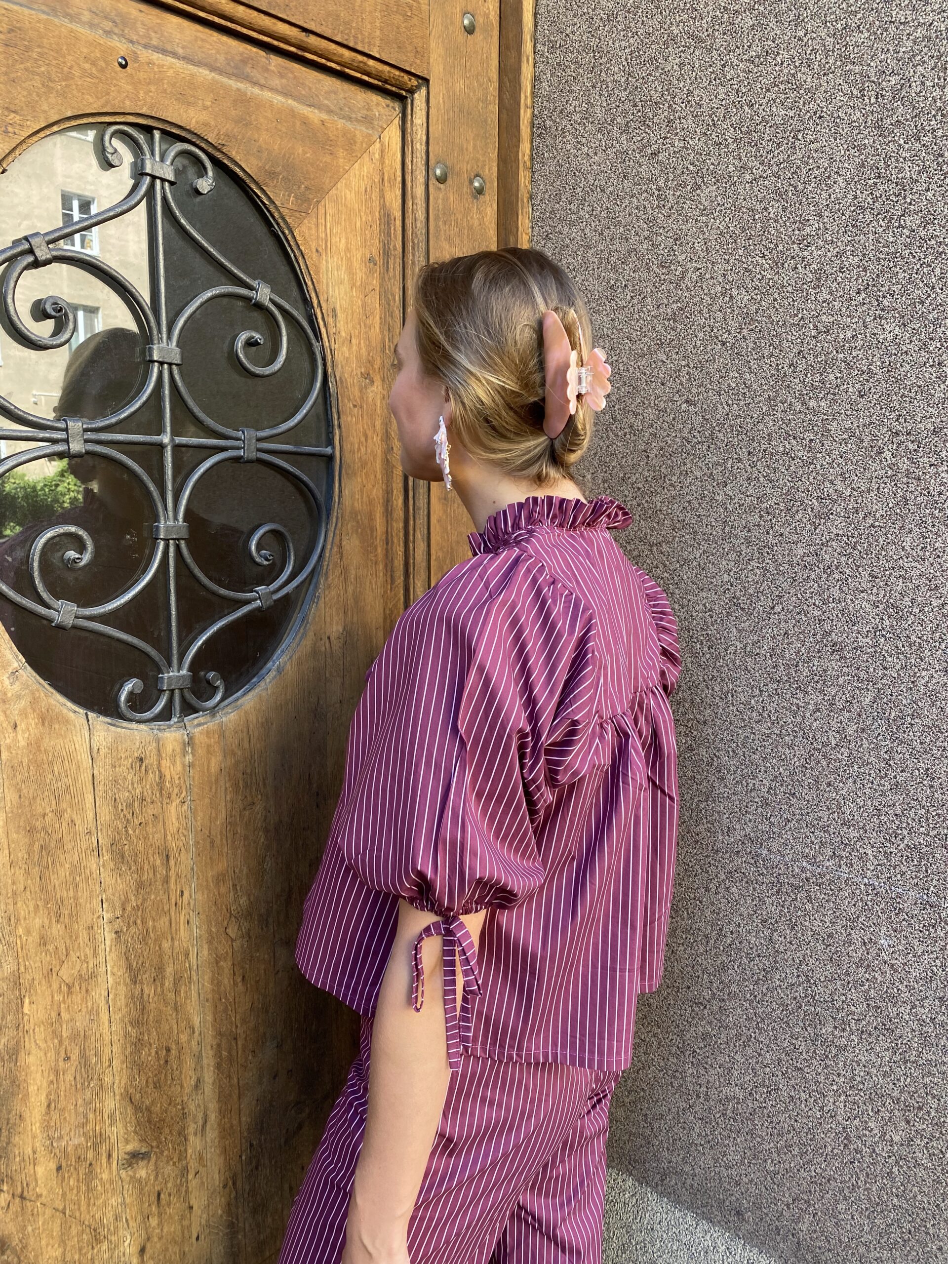 Bluzka z bufiastymi rękawami. Coco to bluzka, która łączy wygodę z charakterem. Krótki krój, bufiaste rękawy i ozdobne guziki tworzą kobiecy, ale niesztampowy look. Noś ją w komplecie ze spodniami Coco lub zestaw z dżinsami – efekt zawsze będzie super. Dostępna w dwóch wersjach: klasyczna krata vichy i romantyczne paski w odcieniach bordo i różu.