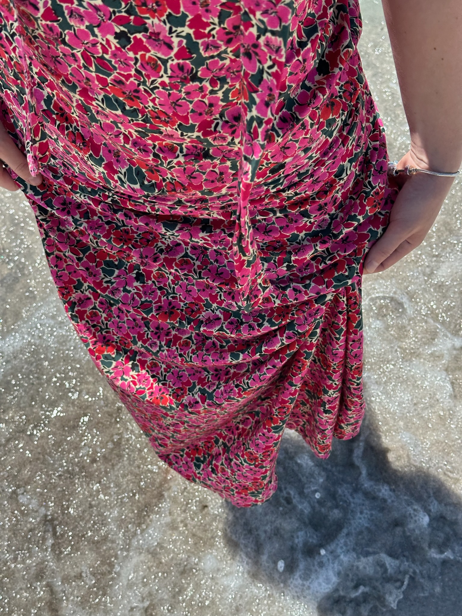 Zwiewna, długa spódnica Leti to ukłon w stronę kobiecości, która nie potrzebuje nadmiaru. Z elastycznym pasem, który można umieścić na dowolnej wysokości, pięknym printem i lekko rozszerzanym krojem – sprawdzi się i na spacer po mieście, i na wakacyjny brunch z przyjaciółkami. Stwórz komplet z topem Leti i pozwól sobie na chwilę lekkości.