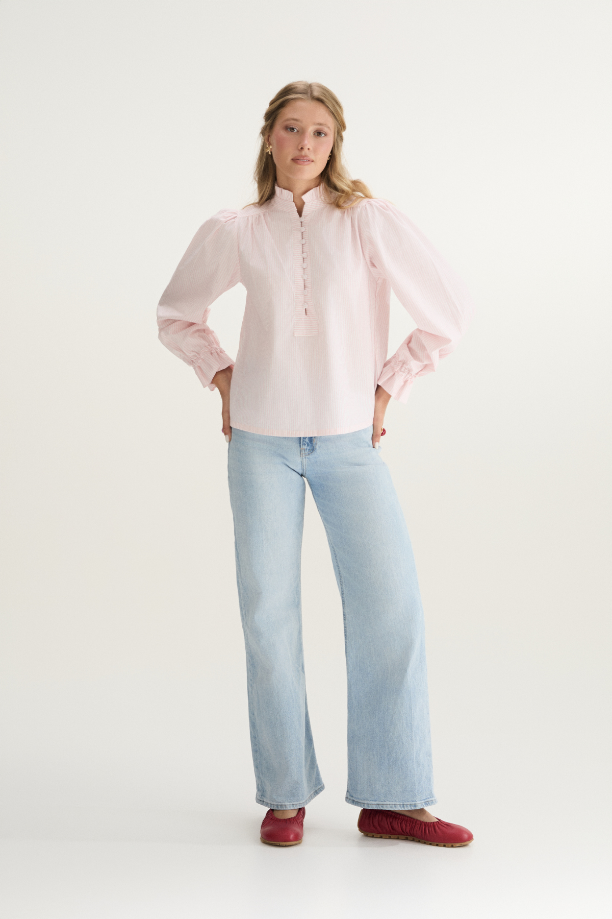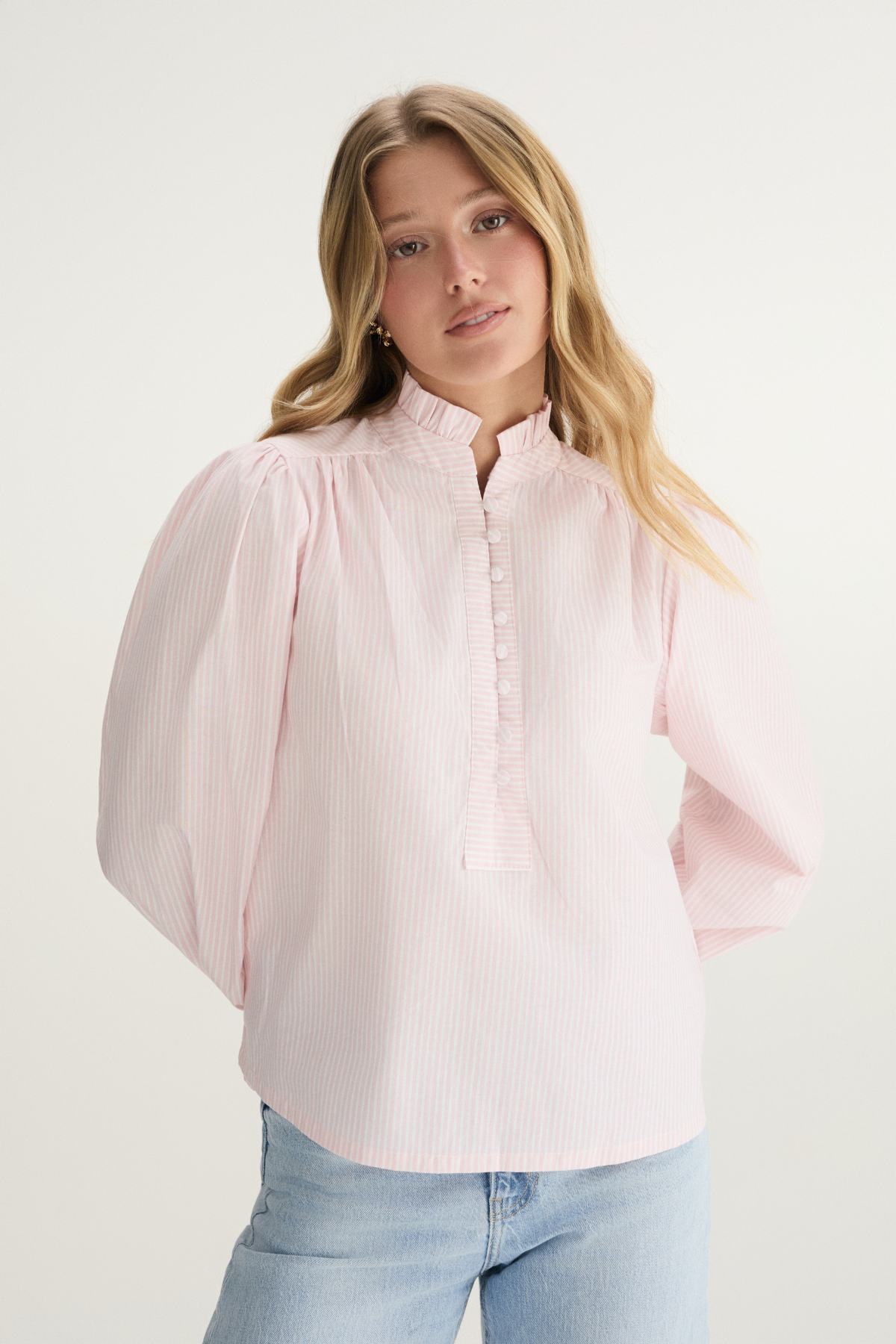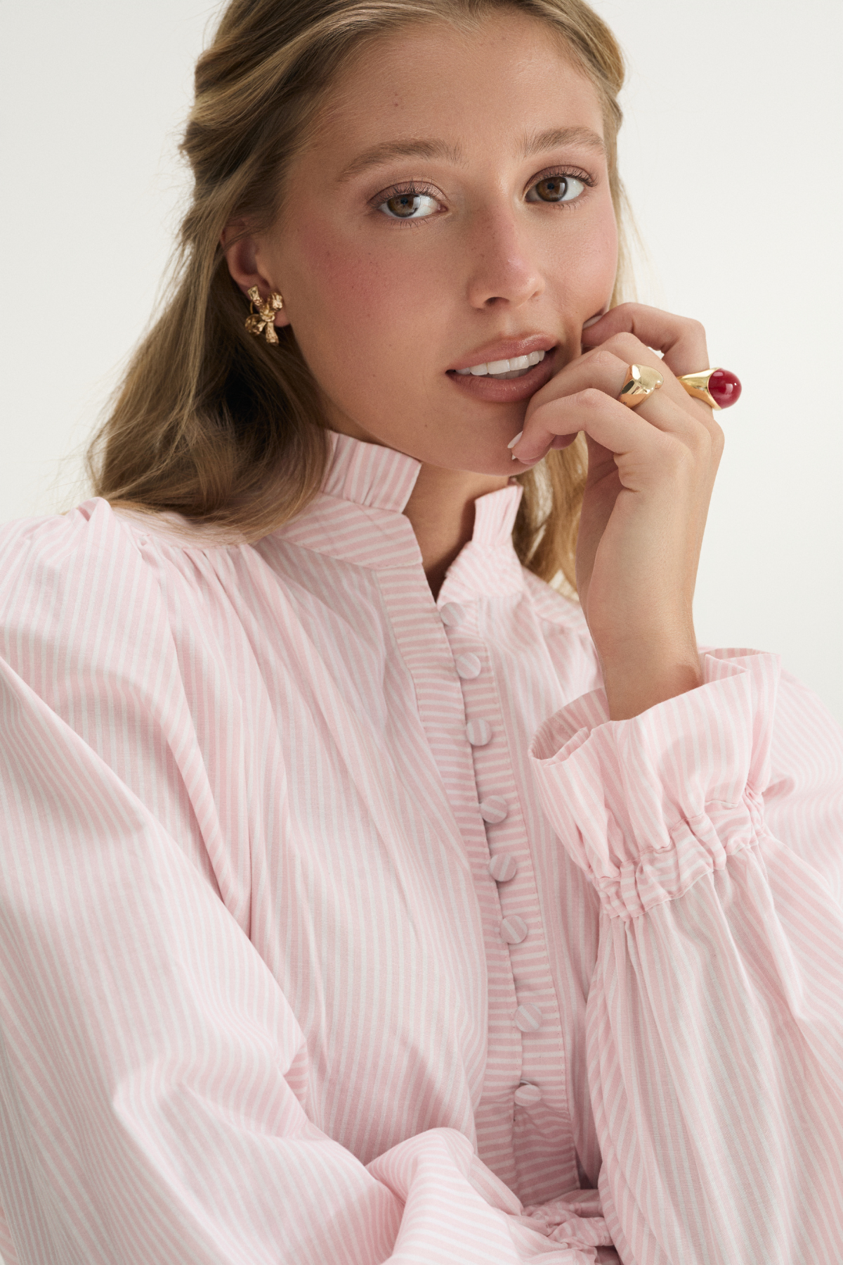 Koszula MELI w delikatne różowe paski to esencja dziewczęcego wdzięku i klasy w wydaniu La Vega. Uszyta w 100% z naturalnej bawełny, zachwyca subtelną fakturą materiału i dopracowanymi detalami – od delikatnych guzików, przez stójkę, po mankiety zakończone uroczą falbanką. To koszula, która idealnie łączy codzienny komfort z romantycznym charakterem. Noś ją do dżinsów, spódnic lub eleganckich spodni – sprawdzi się zarówno w pracy, jak i na weekendowym spacerze do ulubionej kawiarni. Każda sztuka została uszyta w małej, lokalnej szwalni w Polsce z dbałością o każdy detal.
