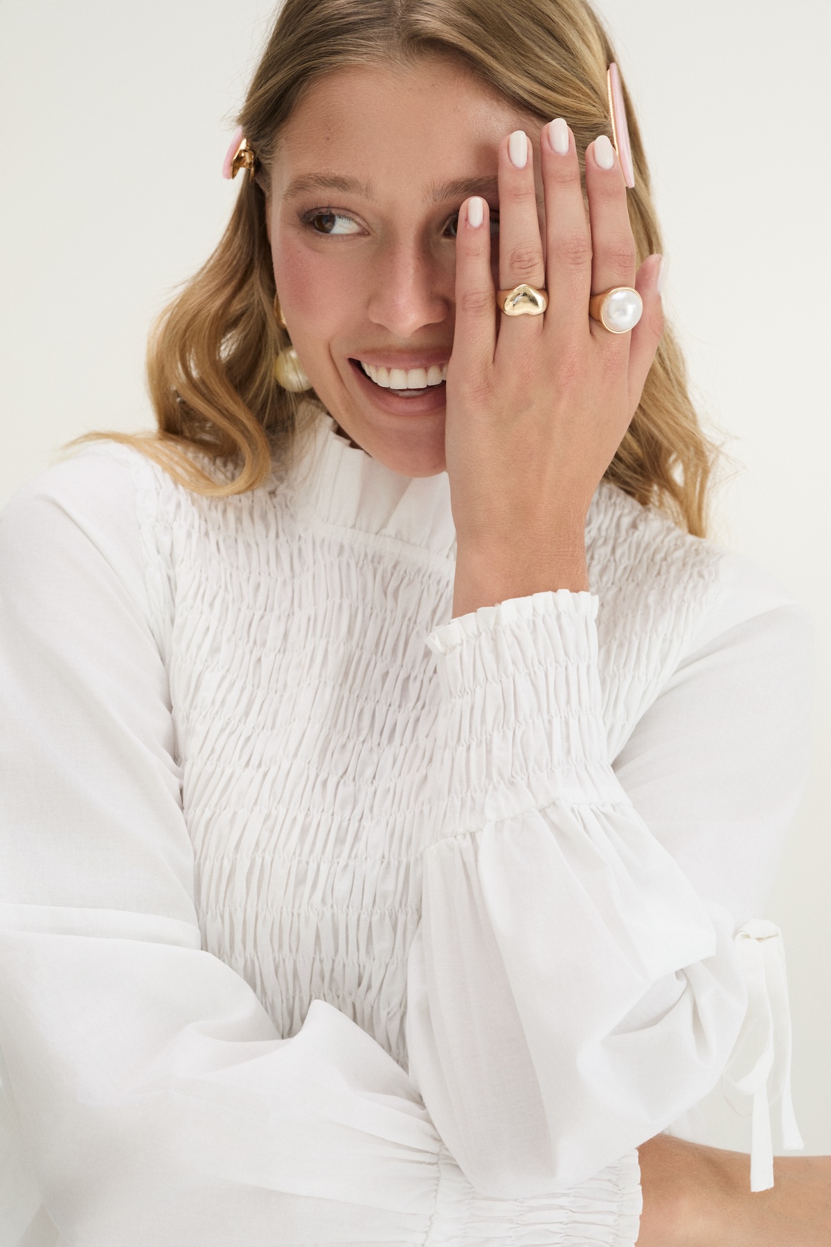 PAOLA to bluzka, która łączy dziewczęcy urok z wygodą. Marszczenia, bufiaste rękawy i subtelne wiązania tworzą lekki, romantyczny look. Świetnie sprawdzi się zarówno w codziennych, jak i eleganckich stylizacjach – od jeansów po spódnice midi.
