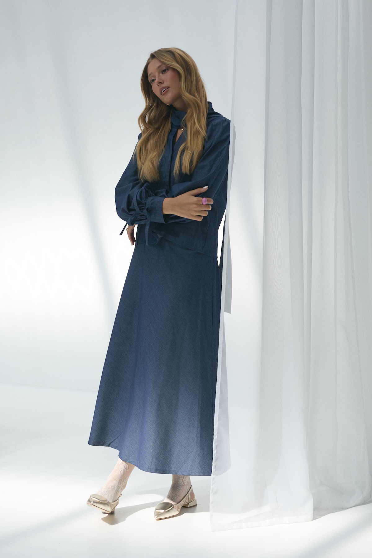 Spódnica SOFI to klasyka z nutą elegancji. Prosta forma w długości midi sprawia, że jest ponadczasowa i wyjątkowo uniwersalna. Uszyta z pięknej bawełny imitującej denim, pięknie układa się w ruchu i pasuje zarówno na co dzień, jak i na wyjątkowe okazje.